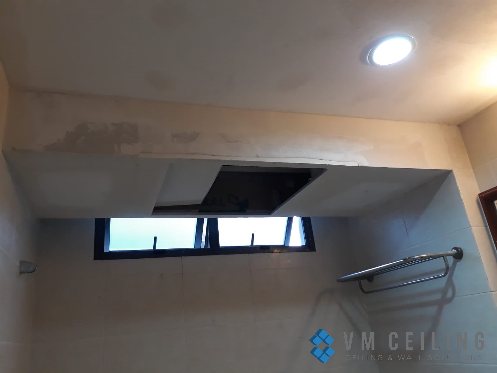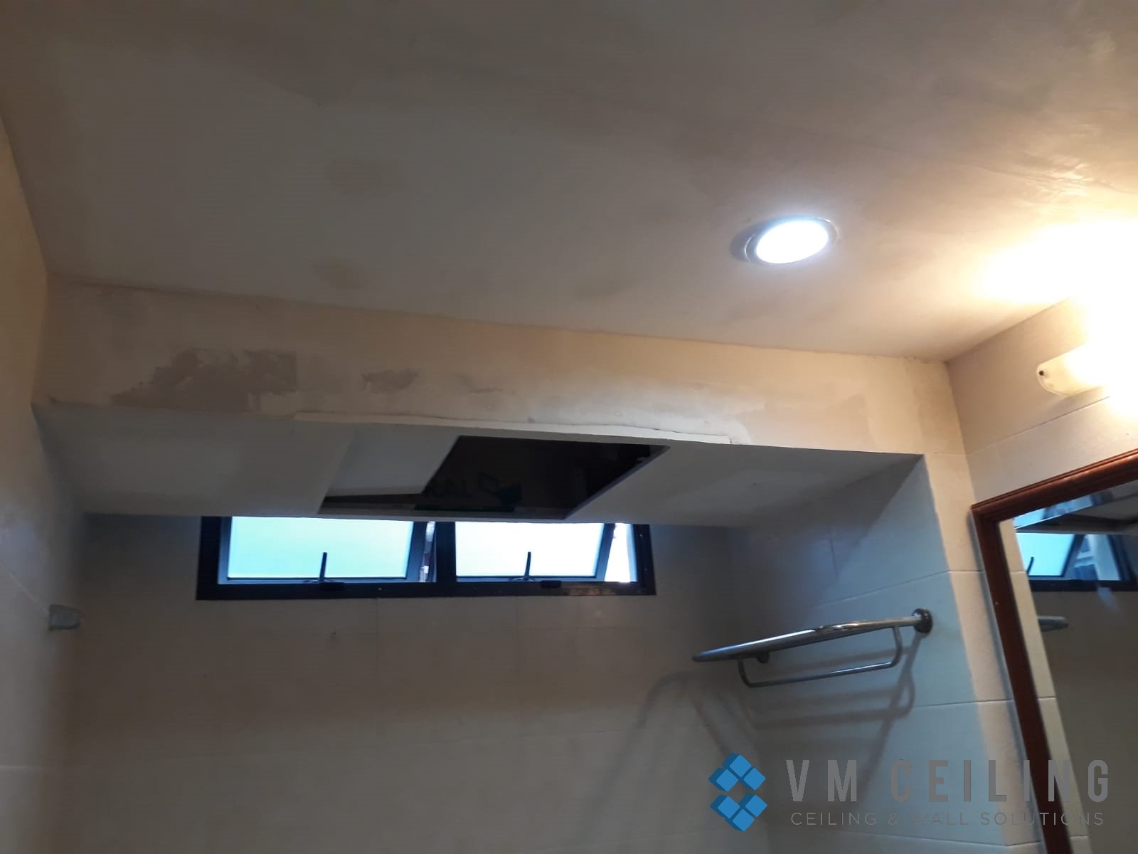 VM False Ceiling Singapore Partition Wall Contractor did a false ceiling and downlights installation in a condo unit’s bathroom in Choa Chu Kang, Singapore. This client initially had a damaged ceiling due to a leakage issue. He then opted to replace his existing ceiling board with an access panel and in addition, we also helped reinstall their existing downlights.