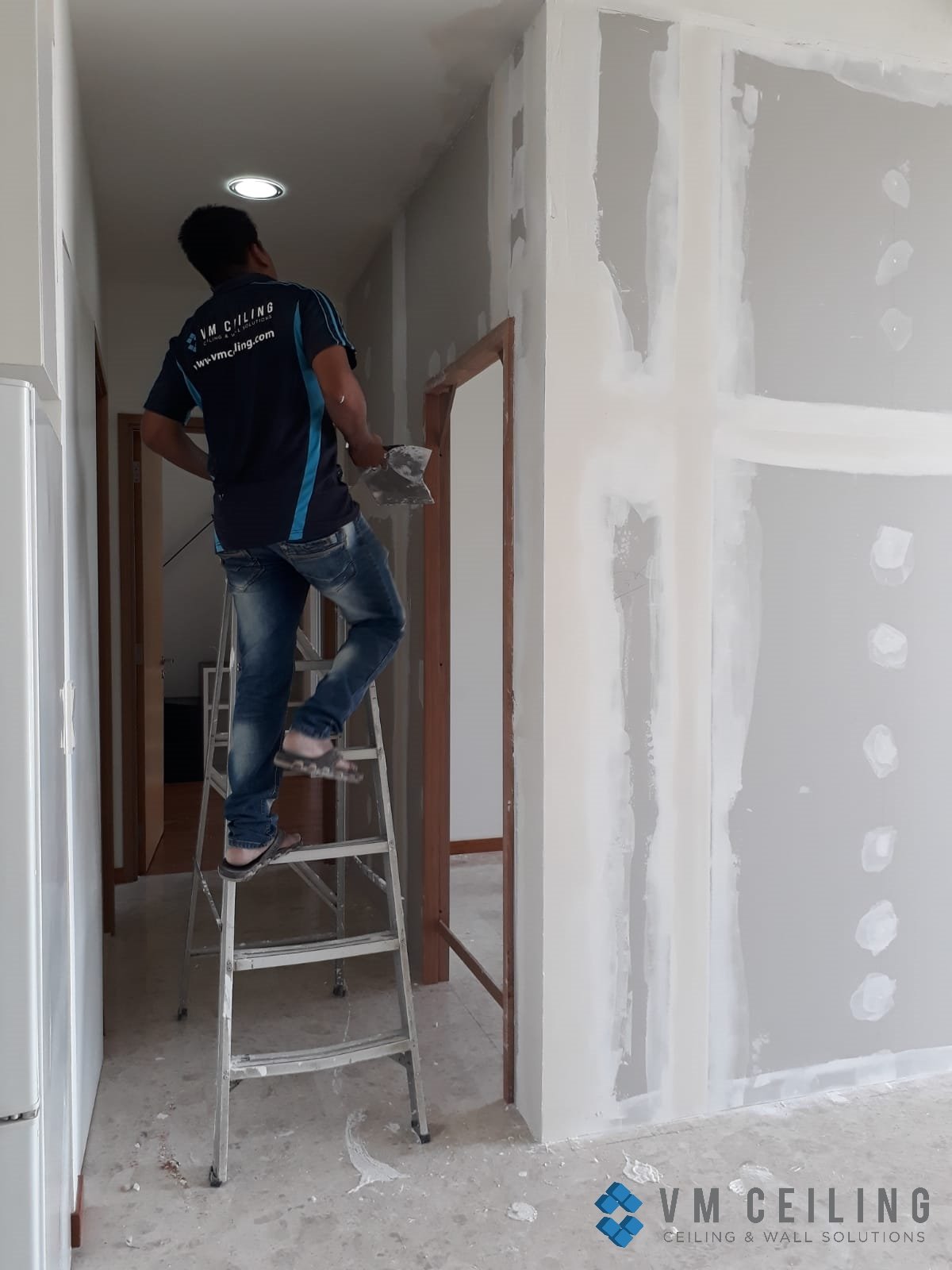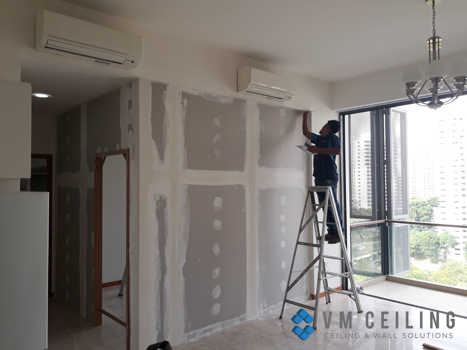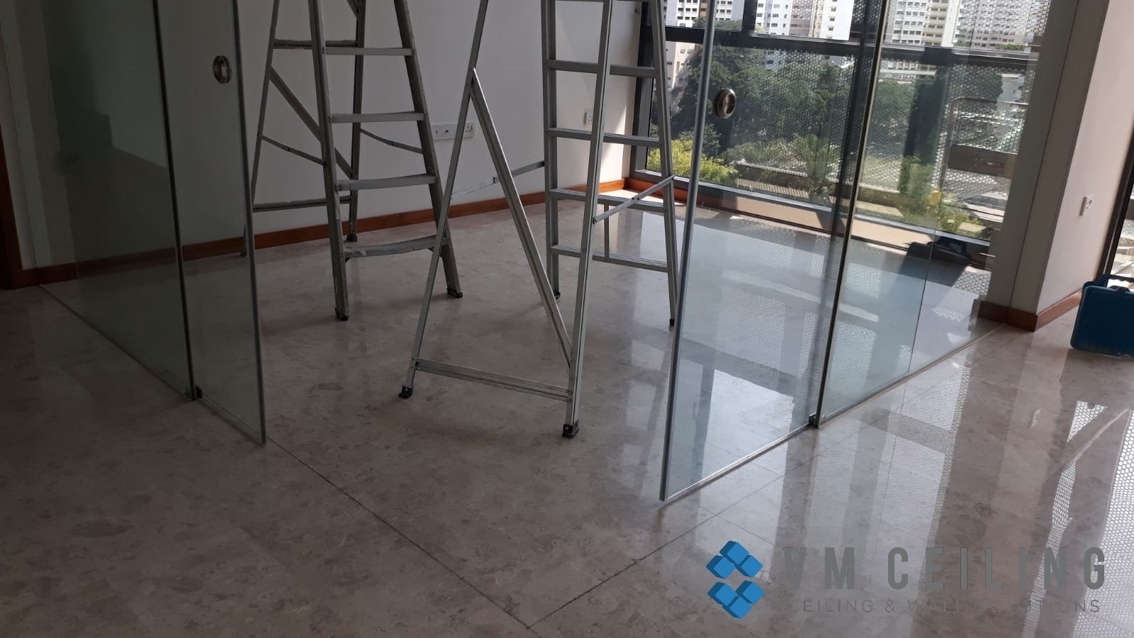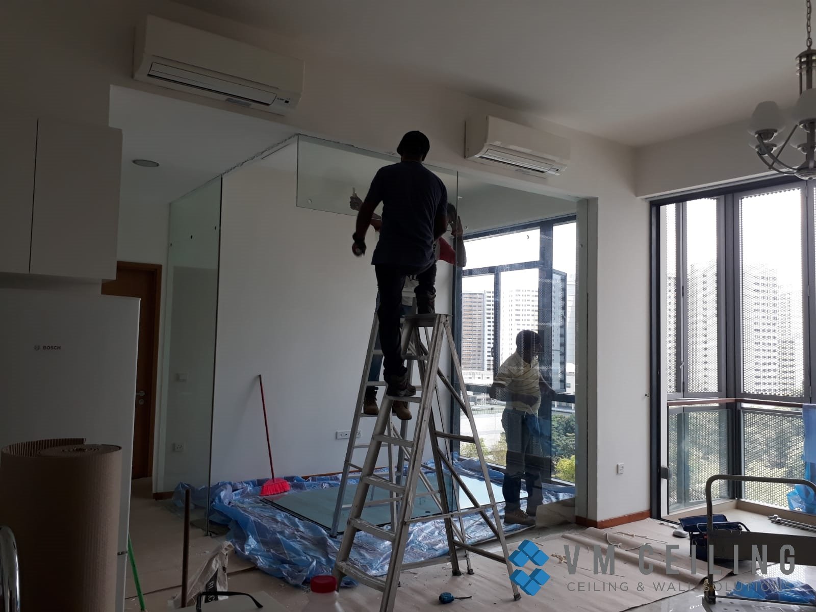 VM False Ceiling Singapore Partition Wall Contractor did a Bedroom Partition Wall installation at a Condo in Woodlands, Singapore. The owner requested to replace the glass wall partition with a drywall partition to build a new room.