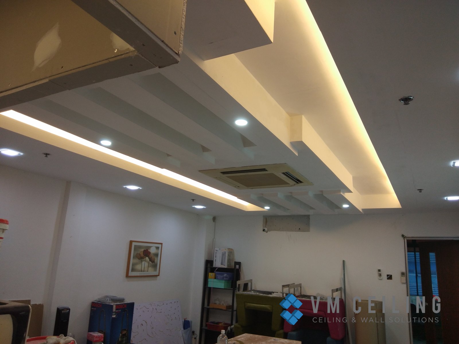 VM False Ceiling Singapore | Partition Wall Contractor offers complete false ceiling and partition wall solutions at direct contractor pricing. We provide false ceiling design (e.g., cove ceiling & lighting, L box ceiling & lighting, living room ceiling, pelmet, etc) and partition wall designs (e.g., room partition wall, HDB partition wall, office partition wall, etc.) for commercial and residential clients including Landed, Condo and HDB false ceiling designs. Using the best ceiling board materials including gypsum board ceiling and plasterboard ceiling, we also provide all types of simple and complex false ceiling and partition wall works with outstanding workmanship. For our plaster wall and drywall partition services, we can help you for all your room and office partition works. With a team of highly experienced false ceiling and partition wall technicians, we are the most recommended false ceiling and partition wall contractor in Singapore. WhatsApp us now at +65 8241 0032 for a quotation for your ceiling and wall solutions.