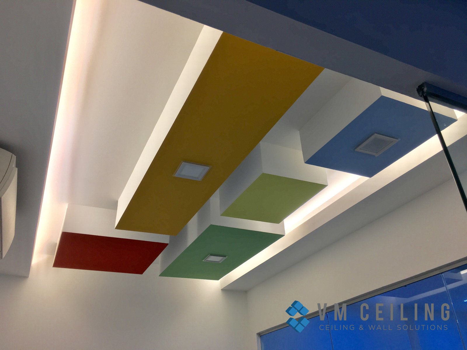 VM False Ceiling Singapore | Partition Wall Contractor offers complete false ceiling and partition wall solutions at direct contractor pricing. We provide false ceiling design (e.g., cove ceiling & lighting, L box ceiling & lighting, living room ceiling, pelmet, etc) and partition wall designs (e.g., room partition wall, HDB partition wall, office partition wall, etc.) for commercial and residential clients including Landed, Condo and HDB false ceiling designs. Using the best ceiling board materials including gypsum board ceiling and plasterboard ceiling, we also provide all types of simple and complex false ceiling and partition wall works with outstanding workmanship. For our plaster wall and drywall partition services, we can help you for all your room and office partition works. With a team of highly experienced false ceiling and partition wall technicians, we are the most recommended false ceiling and partition wall contractor in Singapore. WhatsApp us now at +65 8241 0032 for a quotation for your ceiling and wall solutions.