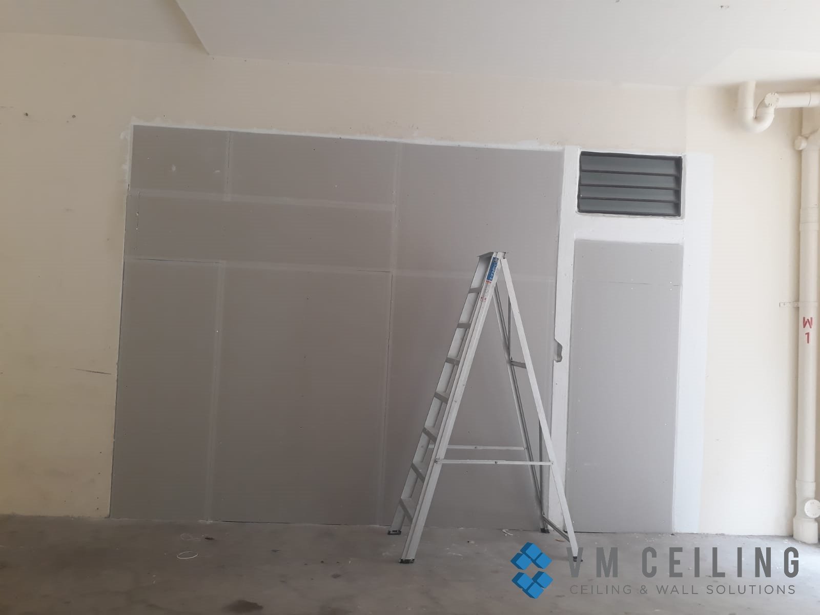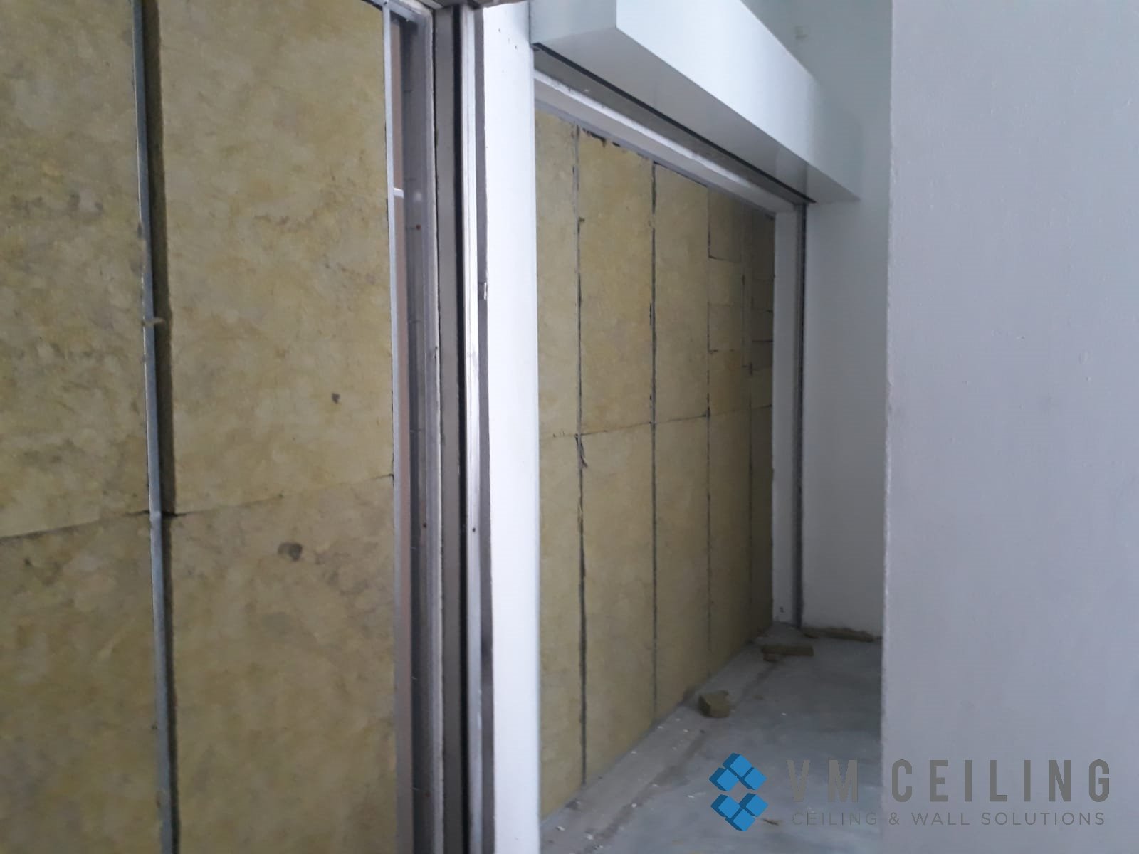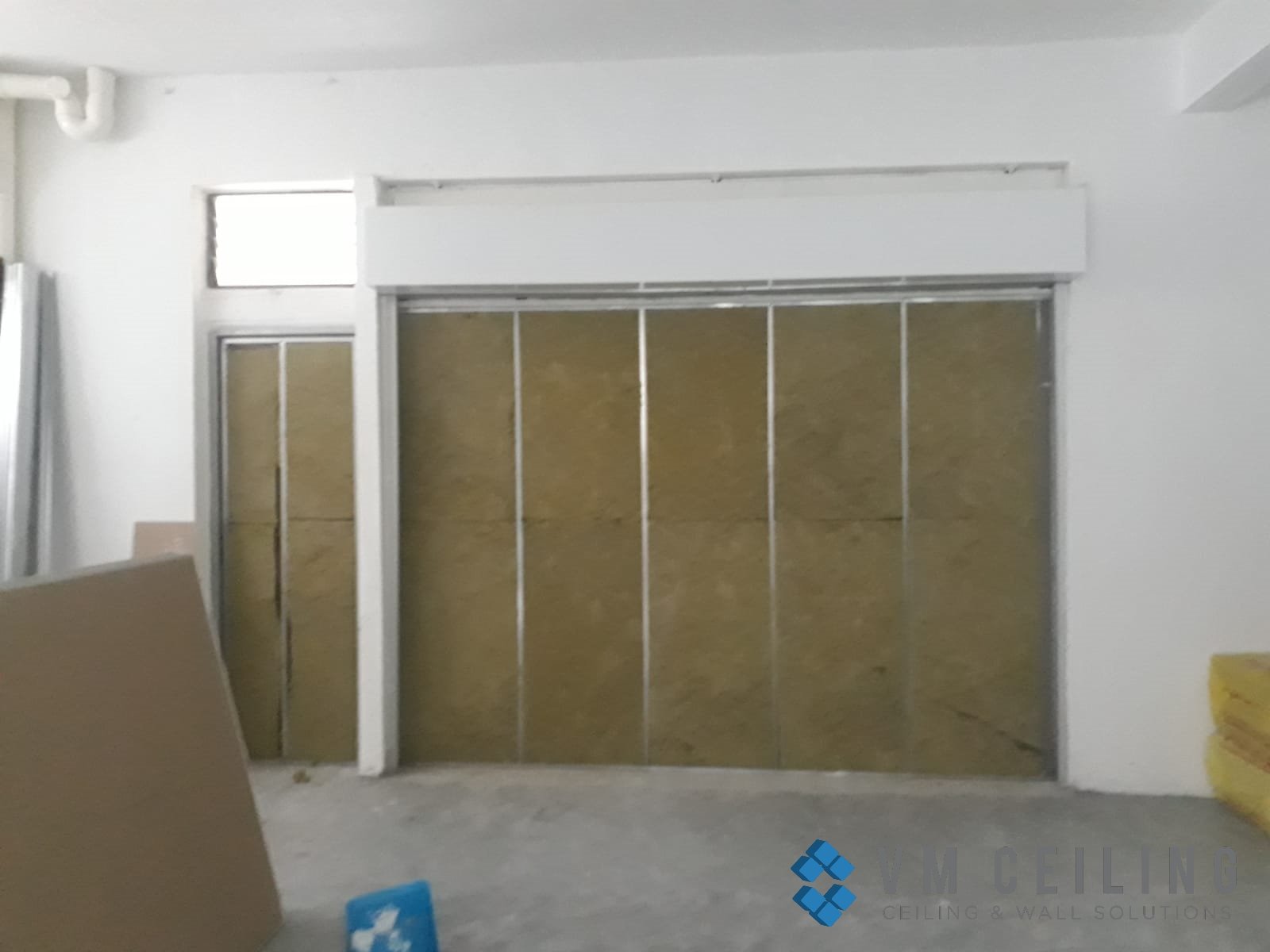 VM False Ceiling Singapore Partition Wall Contractor did a partition wall installation in a commercial studio in an HDB unit in Bukit Batok, Singapore. This client wanted to cover up all the doors and windows in this unit to create a studio space. We used installed a Rockwool Internal Partition Insulation along with a partition wall for this project.