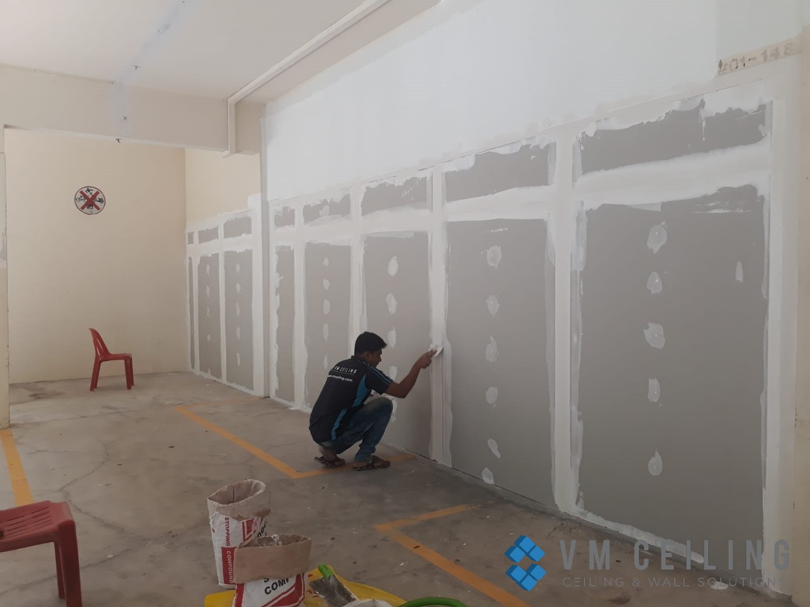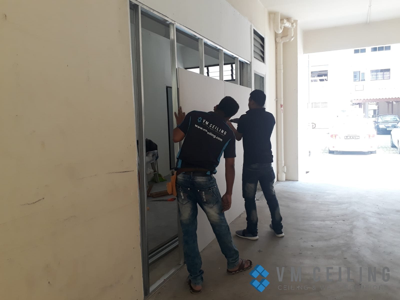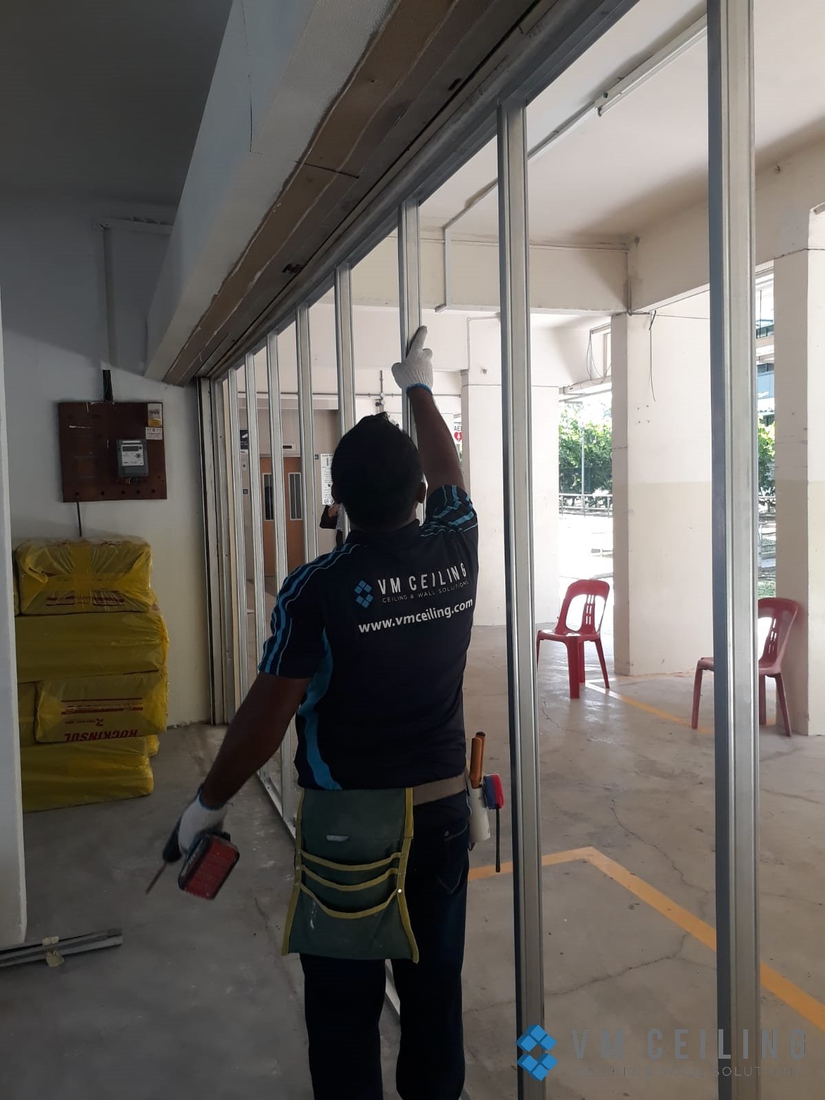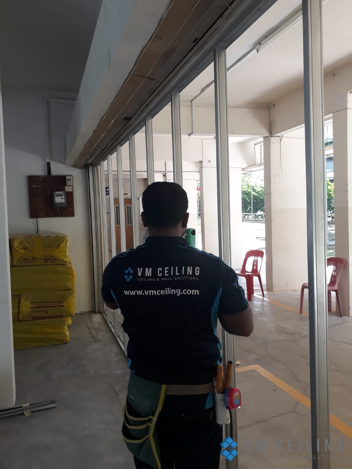 VM False Ceiling Singapore Partition Wall Contractor did a partition wall installation in a commercial studio in an HDB unit in Bukit Batok, Singapore. This client wanted to cover up all the doors and windows in this unit to create a studio space. We used installed a Rockwool Internal Partition Insulation along with a partition wall for this project.