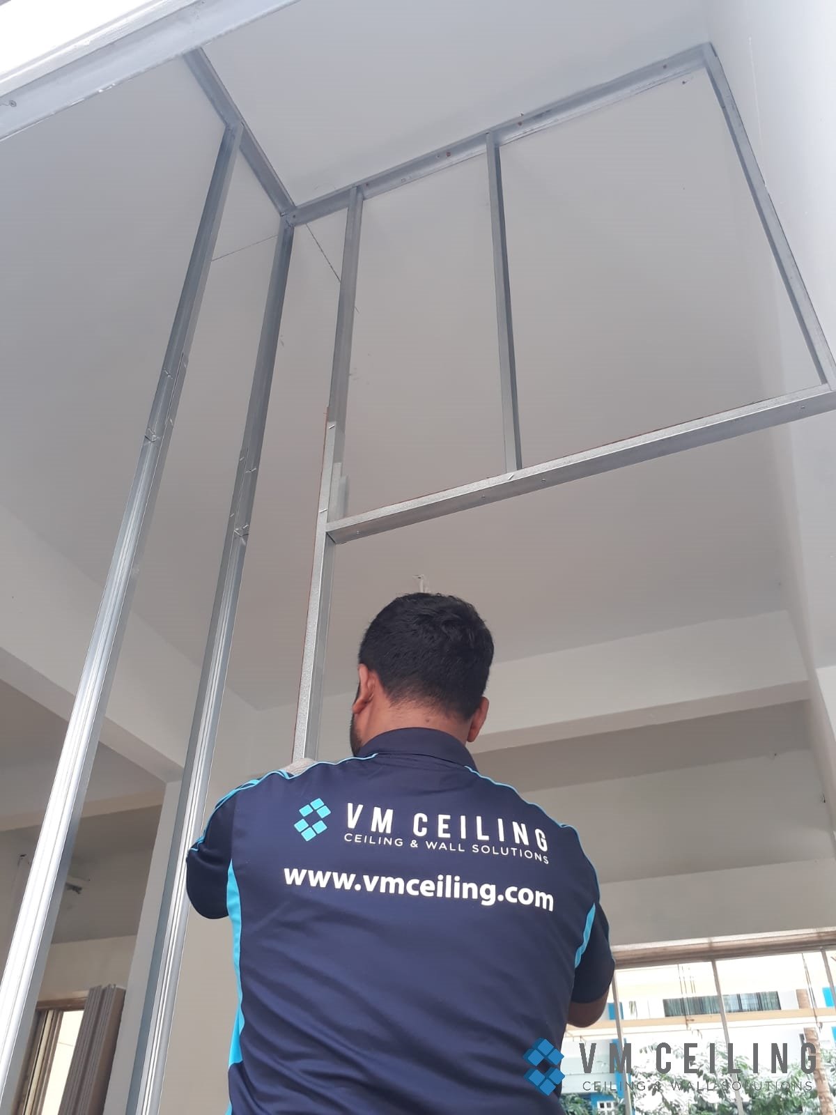 VM False Ceiling Singapore | Partition Wall Contractor offers complete false ceiling and partition wall solutions at direct contractor pricing. We provide false ceiling design (e.g., cove ceiling & lighting, L box ceiling & lighting, living room ceiling, pelmet, etc) and partition wall designs (e.g., room partition wall, HDB partition wall, office partition wall, etc.) for commercial and residential clients including Landed, Condo and HDB false ceiling designs. Using the best ceiling board materials including gypsum board ceiling and plasterboard ceiling, we also provide all types of simple and complex false ceiling and partition wall works with outstanding workmanship. For our plaster wall and drywall partition services, we can help you for all your room and office partition works. With a team of highly experienced false ceiling and partition wall technicians, we are the most recommended false ceiling and partition wall contractor in Singapore. WhatsApp us now at +65 8241 0032 for a quotation for your ceiling and wall solutions.